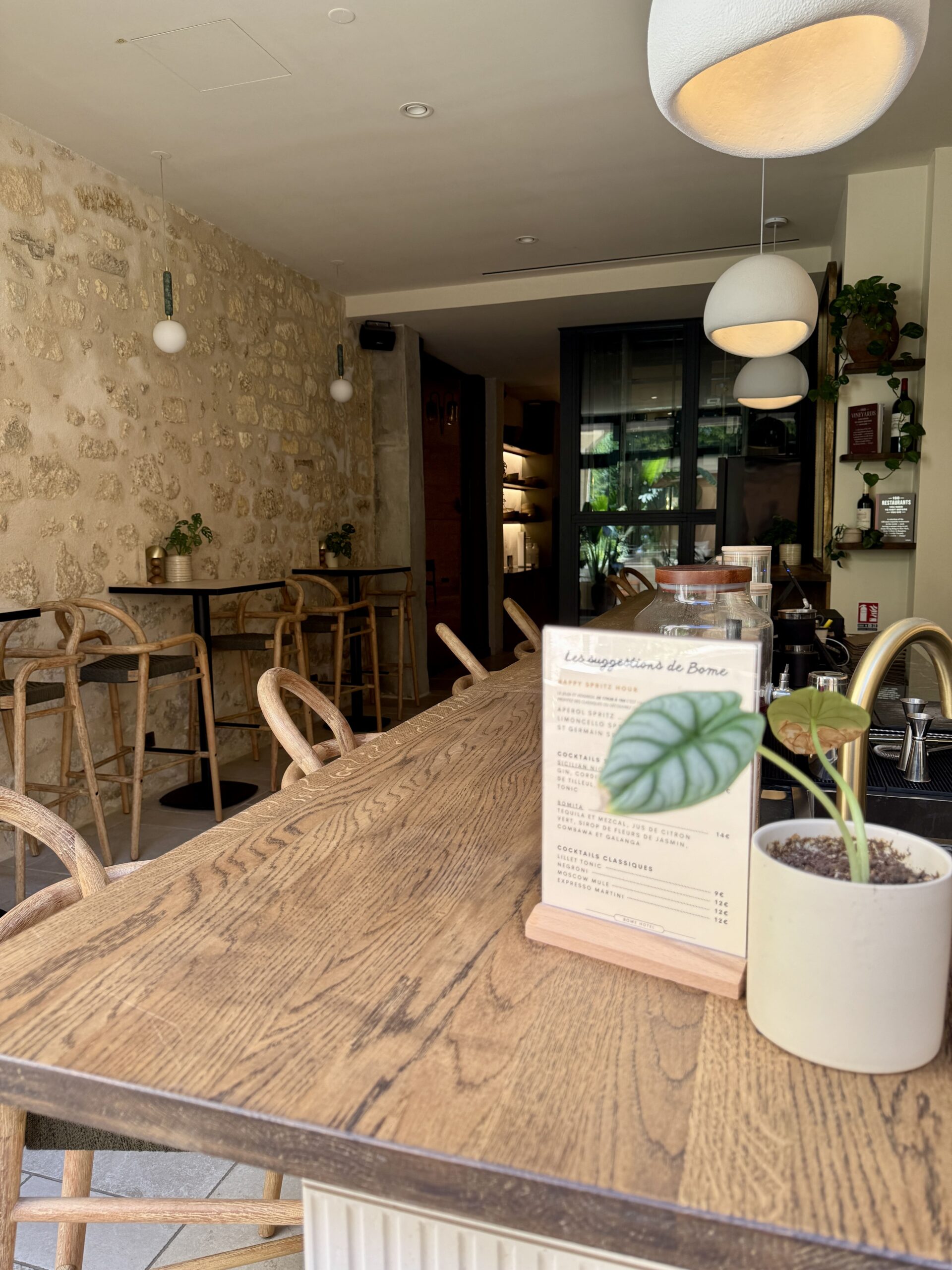 Aux Chartrons, à Bordeaux, Bome se dévoile derrière des murs discrets, loin de l’agitation de la ville. On y découvre un patio caché, véritable havre de paix, où l’on s’installe, à l’abri des regards, pour savourer un cocktail maison, ou un verre de vin, accompagné de produits issus de producteurs et commerçants de la région. Bome vous accueille aussi bien dans son patio préservé, que dans son intérieur chaleureux, pensé pour vivre un moment en toute simplicité. Chez Bome, on cultive l’art de rien faire. On profite… On savoure… Tout simplement ! Pensé comme un cocon, Bome offre une parenthèse en plein coeur de la ville.