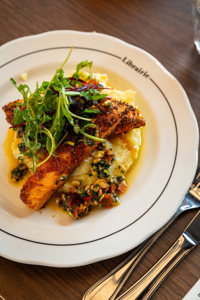 Librairie, installée dans le quartier de la Courrouze à Rennes, est un lieu hybride où les livres dialoguent naturellement avec une proposition food pensée pour accompagner le temps long. On y vient autant pour feuilleter les nombreux ouvrages mis à disposition que pour s’attarder autour d’une assiette ou d’un verre, dans une ambiance feutrée et tamisée qui invite à ralentir. L’espace se prête aux échanges, aux silences aussi, et accueille régulièrement des concerts qui renforcent ce sentiment de lieu vivant et ouvert.