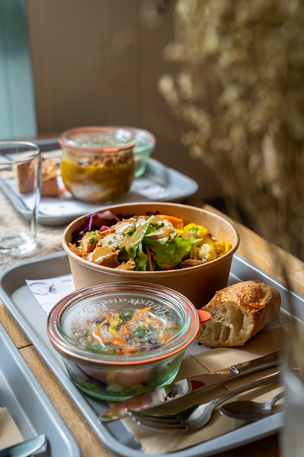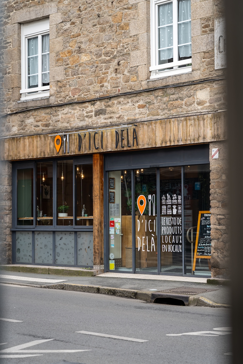 D’ici Delà est une adresse singulière au cœur de Dinan qui propose une approche rafraîchissante de la restauration quotidienne à partir de produits locaux servis dans des bocaux. Ici, on retrouve une cuisine de type fast good pensée autour de recettes maison préparées avec des ingrédients de saison issus de petits producteurs de la région, que l’on peut déguster sur place ou emporter.