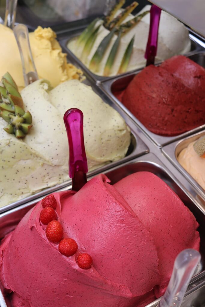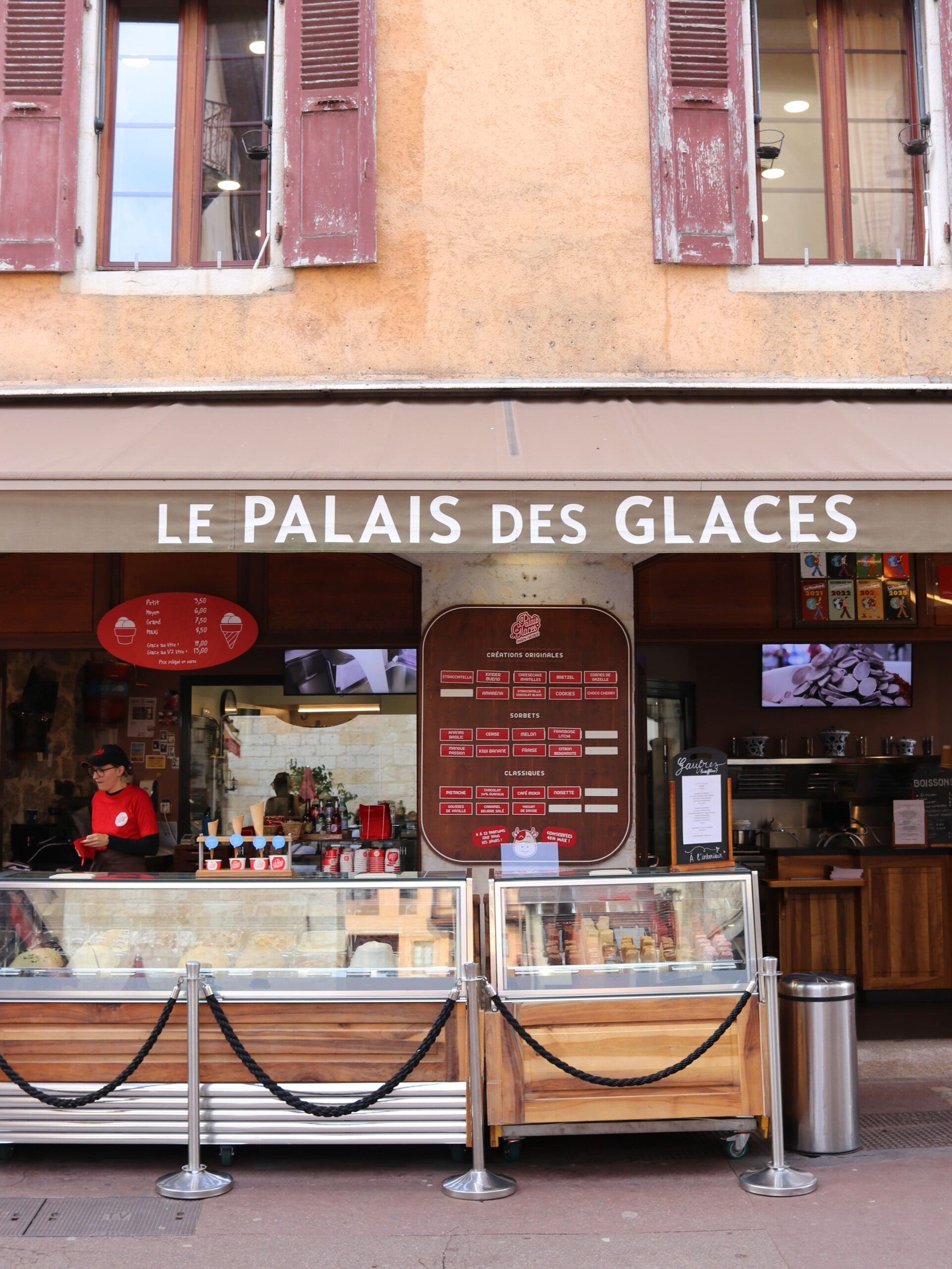 Le Palais des Glaces, niché rue Perrière dans le vieil Annecy, attire les amateurs de douceurs artisanales. Ici, tout est préparé sur place selon l’esprit du gelato italien, avec des glaces réalisées chaque jour à partir de produits frais. Les recettes se distinguent par leur justesse, notamment les sorbets riches en fruits, aux saveurs franches et équilibrées. On y vient autant pour une pause gourmande que pour le plaisir de découvrir des créations originales, sans oublier les gaufres maison qui complètent l’expérience. Une halte simple et soignée au fil d’une balade dans les ruelles.