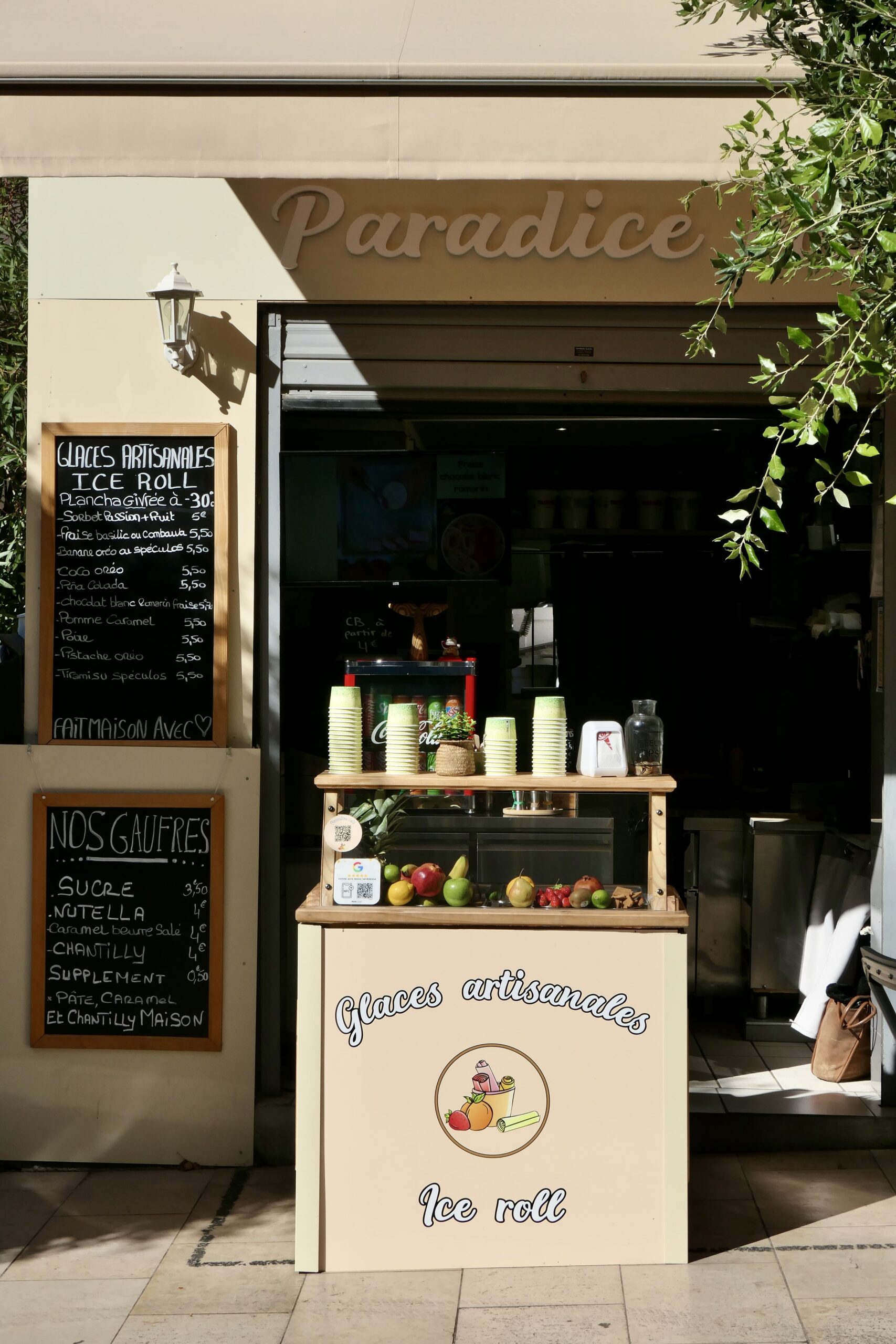 Chez Paradice Roll, à Arcachon, la street food se vit en version faite maison. Thibaut prépare des burgers, focaccias et arancini à partir de produits frais et de saison, avec une attention particulière portée au choix des ingrédients. Côté sucré, gaufres et glaces artisanales à la plancha sont réalisées sous nos yeux, avec des fruits frais et des toppings gourmands. On déguste ces gourmandises généreuses sur la plage, à quelques mètres ou sur les tables hautes devant la boutique, pour se régaler sur le pouce.